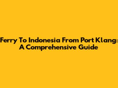 Ferry To Indonesia From Port Klang: A Comprehensive Guide
