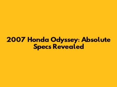 2007 Honda Odyssey: Absolute Specs Revealed