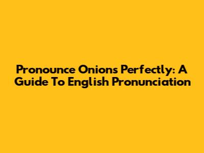 Pronounce Onions Perfectly: A Guide To English Pronunciation