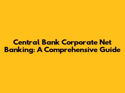 Central Bank Corporate Net Banking: A Comprehensive Guide