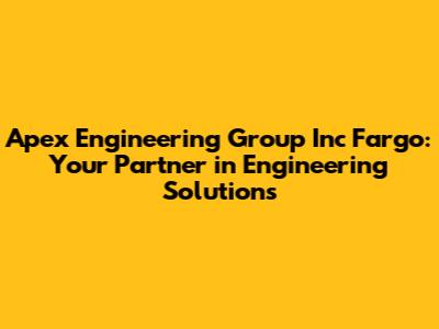 Hey guys! If you're on the hunt for top-notch engineering services in Fargo, North Dakota, look no further than Apex Engineering Group Inc! This awesome company is a powerhouse of expertise, offering a wide array of services to meet diverse needs. Whether you're diving into a new construction project, revamping existing infrastructure, or need specialized consulting, Apex Engineering Group is equipped to deliver. Let's dive into what makes them a go-to choice in the Fargo area.