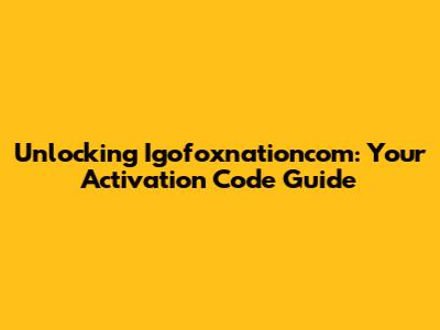 Unlocking Igofoxnationcom: Your Activation Code Guide