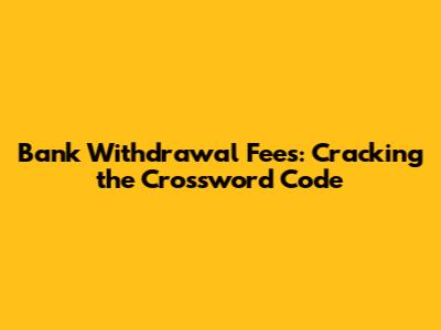 When it comes to crosswords, clues related to bank withdrawal fees often play on synonyms, abbreviations, or related concepts. Here are some common clues you might encounter and their potential answers:
