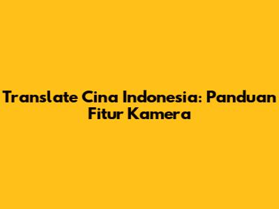Translate Cina Indonesia: Panduan Fitur Kamera