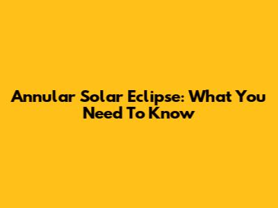 Annular Solar Eclipse: What You Need To Know