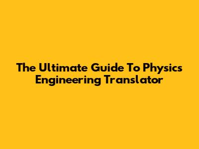 The Ultimate Guide To Physics Engineering Translator