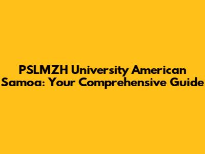 PSLMZH University American Samoa: Your Comprehensive Guide