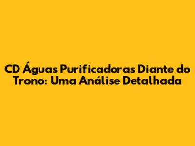 Olá, pessoal! Se você, assim como eu, é apaixonado por música cristã e busca uma experiência de adoração que toque o coração, então você está no lugar certo. Hoje, vamos mergulhar no universo do CD Águas Purificadoras Diante do Trono, um álbum que marcou época e continua sendo uma fonte de inspiração para muitos. Prepare-se para uma jornada de fé, música e reflexão! Vamos explorar cada detalhe deste projeto, desde a sua concepção até o impacto que ele causou e ainda causa na vida de milhares de pessoas. Este guia completo é para você, que deseja conhecer a fundo essa obra, seja você um fã de longa data ou alguém que está descobrindo o Diante do Trono agora. Vamos nessa?