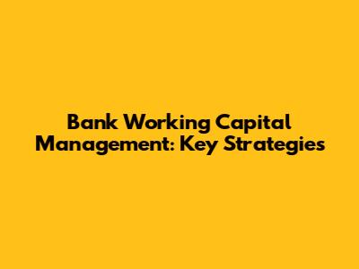 Bank Working Capital Management: Key Strategies
