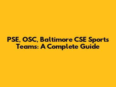 PSE, OSC, Baltimore CSE Sports Teams: A Complete Guide