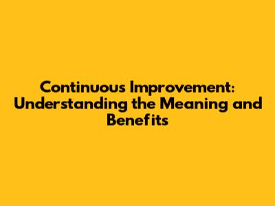 Benefits of Continuous Improvement