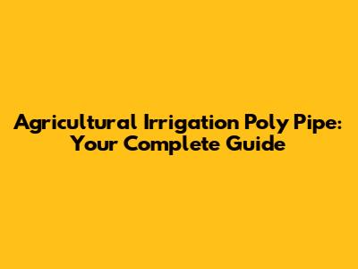 Agricultural Irrigation Poly Pipe: Your Complete Guide