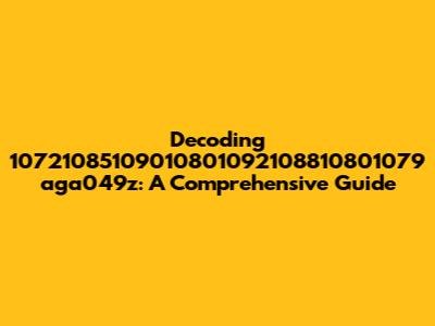 Unraveling the Mystery: At first glance, "10721085109010801092108810801079 aga049z" appears to be a jumbled mess of numbers and letters. It doesn't immediately scream anything obvious, like a common acronym or a well-known code. More than likely, it’s an alphanumeric identifier, which is a fancy way of saying it's a unique string used to identify something specific. This could be anything from a product code to a serial number, or even a randomly generated identifier for a specific event or transaction. The presence of both numbers and lowercase letters adds to its complexity, making it harder to guess its purpose without additional context.
