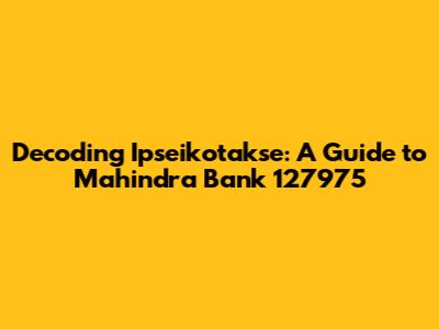 Let's dive into the world of Ipseikotakse and what it means in the context of Mahindra Bank 127975. You might be scratching your head right now, wondering, "What in the world is Ipseikotakse?" Well, don't worry, guys, we're going to break it down in a way that's super easy to understand. In essence, understanding specific codes and terms related to banking, like Ipseikotakse, is crucial for ensuring smooth transactions and avoiding potential hiccups. Whether you're a seasoned finance pro or just starting out, grasping these concepts can save you time, money, and a whole lot of frustration. So, buckle up, and let's unravel the mystery of Ipseikotakse within the Mahindra Bank framework.