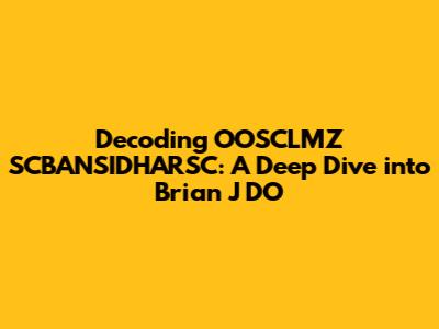 Let's break down this intriguing title: Decoding OOSCLMZ SCBANSIDHARSC: A Deep Dive into Brian J DO. It appears to be a combination of seemingly random characters and a name, suggesting there's more to uncover. In this article, we'll try to unravel the mystery behind "OOSCLMZ SCBANSIDHARSC" and its connection to "Brian J DO." Whether it's an acronym, a code, or a unique identifier, we'll explore potential meanings and contexts where such a combination might appear. This in-depth analysis aims to provide clarity and understanding, offering insights into the possible origins and significance of this unusual string of characters and the individual associated with it.