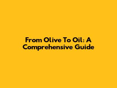 From Olive To Oil: A Comprehensive Guide