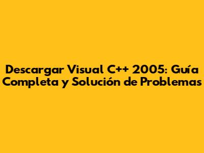 Descargar Visual C++ 2005: Guía Completa Y Solución De Problemas