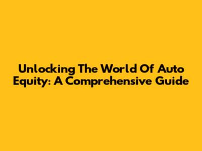 Unlocking The World Of Auto Equity: A Comprehensive Guide