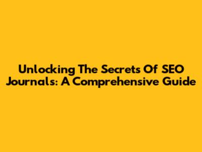 Unlocking The Secrets Of SEO Journals: A Comprehensive Guide