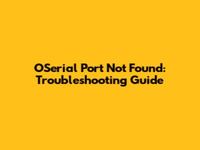 The key takeaway here is that the "OSerial Port Not Found" error is a common problem with diverse causes, but with a systematic approach, you can identify and resolve the underlying issue, restoring seamless serial communication for your projects. So, let’s dive into the troubleshooting steps to get you back on track!