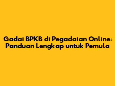Gadai BPKB Di Pegadaian Online: Panduan Lengkap Untuk Pemula