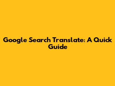 Google Search Translate: A Quick Guide