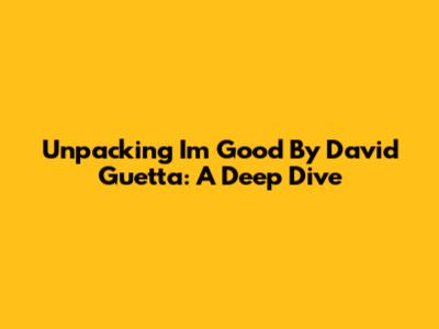 Unpacking 'I'm Good' By David Guetta: A Deep Dive