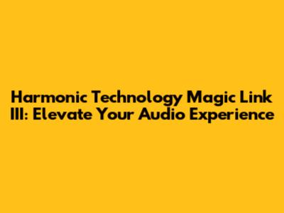 What's up, audiophiles and music lovers! Today, we're diving deep into a piece of gear that's been making waves in the high-fidelity world: the Harmonic Technology Magic Link III. If you're someone who's passionate about getting the absolute best sound out of your system, you've probably heard the buzz. This isn't just another cable; it's designed to be a critical component in achieving sonic purity. We're talking about unlocking details you never knew existed, experiencing a soundstage that feels alive, and generally making your music sound, well, magical. Stick around as we break down why this particular interconnect might just be the missing piece in your audio puzzle, offering insights that go beyond the spec sheet and into the realm of actual listening pleasure. We'll explore its construction, its sonic impact, and who this cable is really for. So, grab your favorite headphones, settle in, and let's get to the heart of what makes the Magic Link III so special.