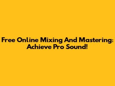 Free Online Mixing And Mastering: Achieve Pro Sound!