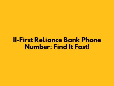 II-First Reliance Bank Phone Number: Find It Fast!