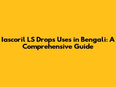 Hey guys! Let's dive into the world of Iascoril LS Drops and explore everything you need to know about them, especially from a Bengali perspective. This guide is designed to be your go-to resource, breaking down the uses, benefits, and important information about this medication in a clear and easy-to-understand way. Whether you're a parent, a caregiver, or simply curious, we'll cover all the bases to ensure you're well-informed. So, grab a cup of cha, settle in, and let's get started!