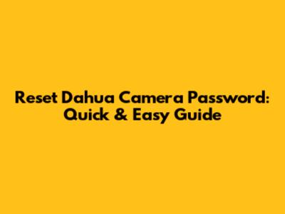 Reset Dahua Camera Password: Quick & Easy Guide