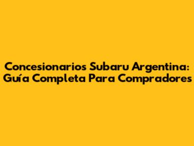 Concesionarios Subaru Argentina: Guía Completa Para Compradores