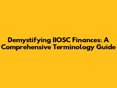 Demystifying IIOSC Finances: A Comprehensive Terminology Guide