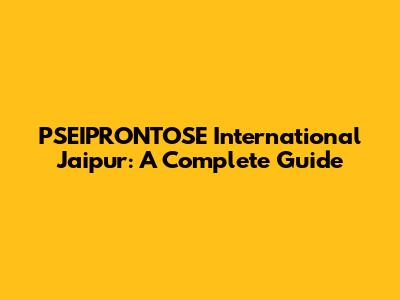 PSEIPRONTOSE International Jaipur: A Complete Guide