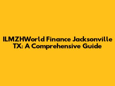 Hey there, finance enthusiasts! 👋 Today, we're diving deep into the world of ILMZHWorld Finance, specifically in Jacksonville, TX. If you're looking for financial guidance, need some cash, or just want to understand the financial landscape a bit better, you've come to the right place. We'll explore everything from their services and how they operate to why they're a go-to choice for many folks in Jacksonville. So, grab a coffee (or your beverage of choice), get comfy, and let's unravel the ins and outs of ILMZHWorld Finance together! 🎉