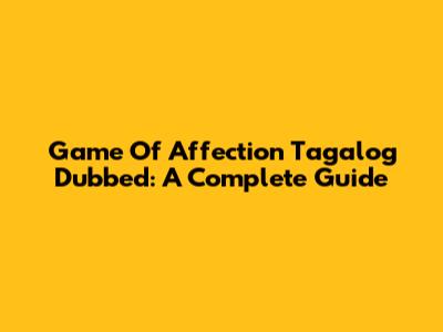 Game Of Affection Tagalog Dubbed: A Complete Guide