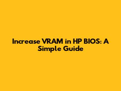 Hey everyone! Today, we're diving into the world of VRAM and how you can potentially increase it in your HP BIOS. Now, before we get started, it's super important to understand that VRAM (Video RAM), which is dedicated memory for your graphics card, isn't always something you can just increase willy-nilly. The ability to adjust VRAM settings in the BIOS depends heavily on your specific hardware configuration – your motherboard, CPU, and integrated graphics (if you're not using a dedicated graphics card). So, let’s explore this topic, and I’ll walk you through what you need to know, step by step.