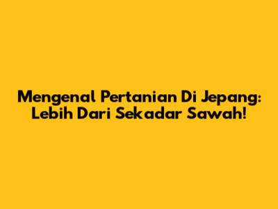 Mengenal Pertanian Di Jepang: Lebih Dari Sekadar Sawah!