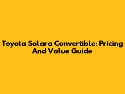 Toyota Solara Convertible: Pricing And Value Guide