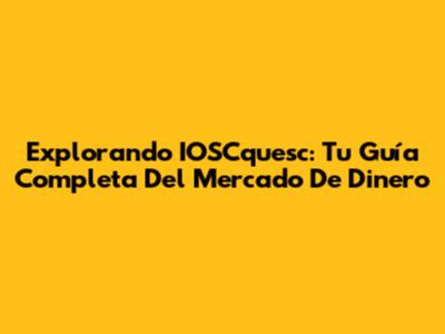 Explorando IOSCquesc: Tu Guía Completa Del Mercado De Dinero