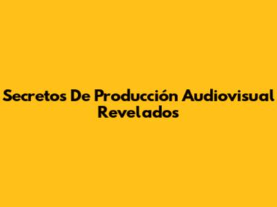 Secretos De Producción Audiovisual Revelados