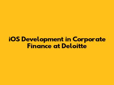 Hey guys! Ever wondered how iOS development plays a crucial role in the corporate finance world, especially at a powerhouse like Deloitte? Well, you're in for a treat! Let's dive deep into the fascinating intersection of mobile technology and finance, exploring how iOS development is shaping the future of corporate finance at Deloitte. We'll cover everything from the specific apps they might be building to the skill sets they're looking for, and even touch on how you can potentially snag a role in this exciting field. So, buckle up and let's get started!