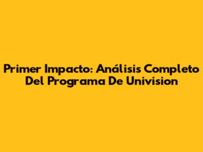 Primer Impacto: Análisis Completo Del Programa De Univision