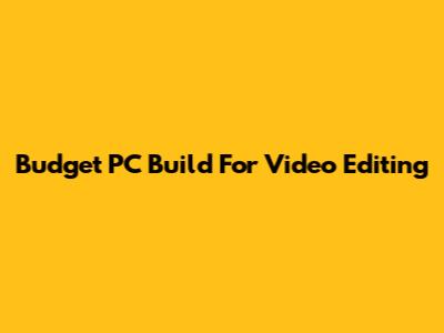 Budget PC Build For Video Editing