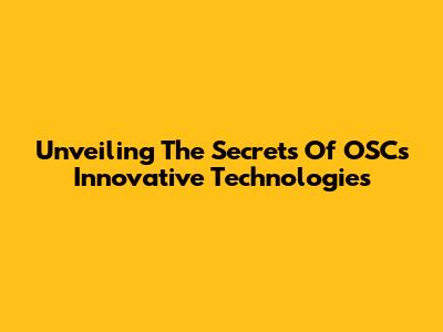 Unveiling The Secrets Of OSC's Innovative Technologies