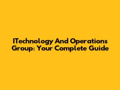 ITechnology And Operations Group: Your Complete Guide