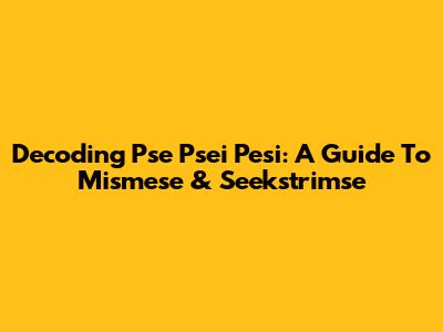 Decoding Pse Psei Pesi: A Guide To Mismese & Seekstrimse