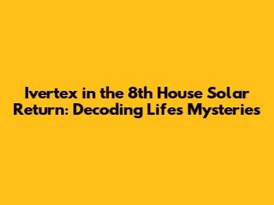 When the Ivertex lands in the 8th house of your solar return, it's like a signal that these themes will be particularly active during the year. You might find yourself going through significant personal transformations, facing difficult emotional challenges, or dealing with issues around shared resources, like inheritances, debts, or investments. Intimacy and close relationships will be a focal point, with potential for deeper connections or significant changes in existing partnerships. The 8th house in the solar return is like a pressure cooker, where intense emotions and transformative experiences simmer. Be prepared for a year of profound change and a deeper understanding of yourself and your place in the universe. This year will be all about transformation, intimacy, and shared resources.