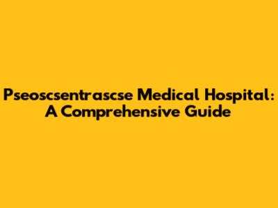 Pseoscsentrascse Medical Hospital: A Comprehensive Guide